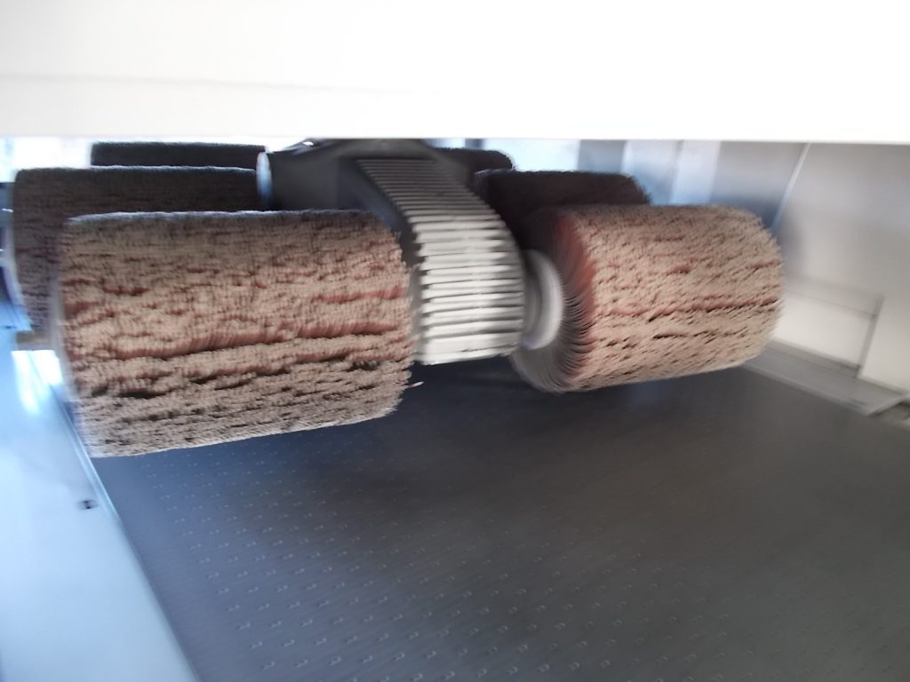 バリ取り機は、材料の切断の際に出るバリを、回転するローラーブラシに通して取る機械です。タレットパンチプレスやレーザー加工機で生じるバリを適宜処理してくれます。