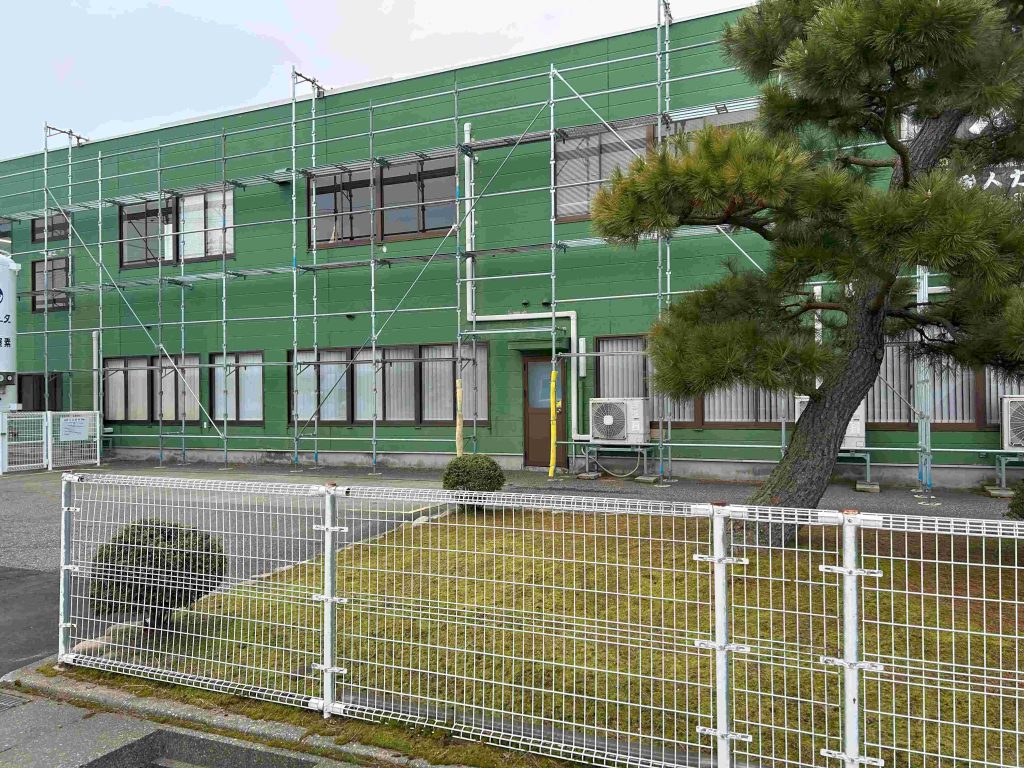 事務所部分の外壁を緑色に塗り直してから、およそ20年。風雨により塗装が剥げてきました。