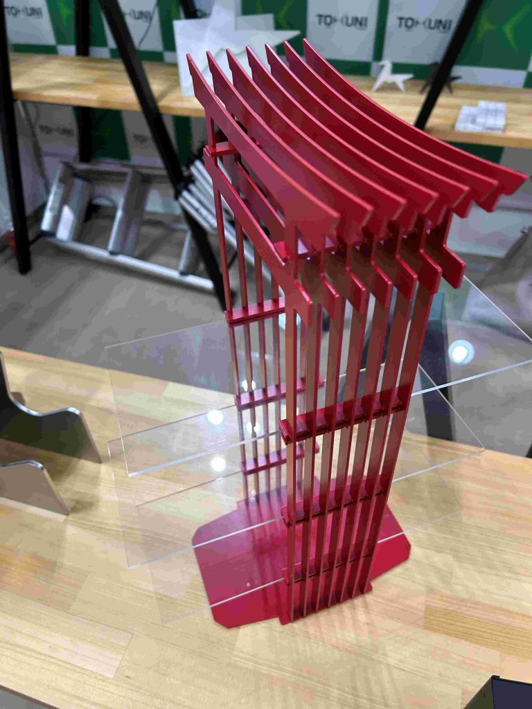 鳥居をイメージした朱色。ティースタンドは洋菓子のイメージがありますが、和菓子でも提供することが出来ます。季節に合わせて和菓子の内容を変えていくことで、日本の四季を感じるアフタヌーンティーを提供することが出来ます。