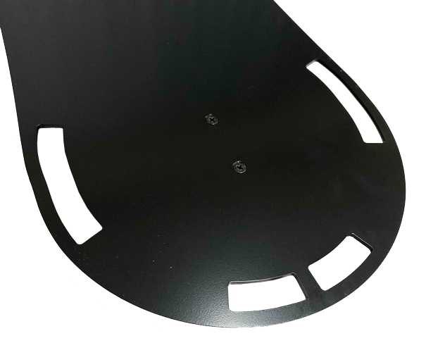 金具の固定には皿ビスを使用しています。ボール盤を用いてボード部分に皿モミ加工を施すことで、ビスの頭をもぐしボード面の出っ張りを無くしています。脚のタイプを変更する際は、十字ドライバーでネジを外し簡単に取り換えることが出来ます。